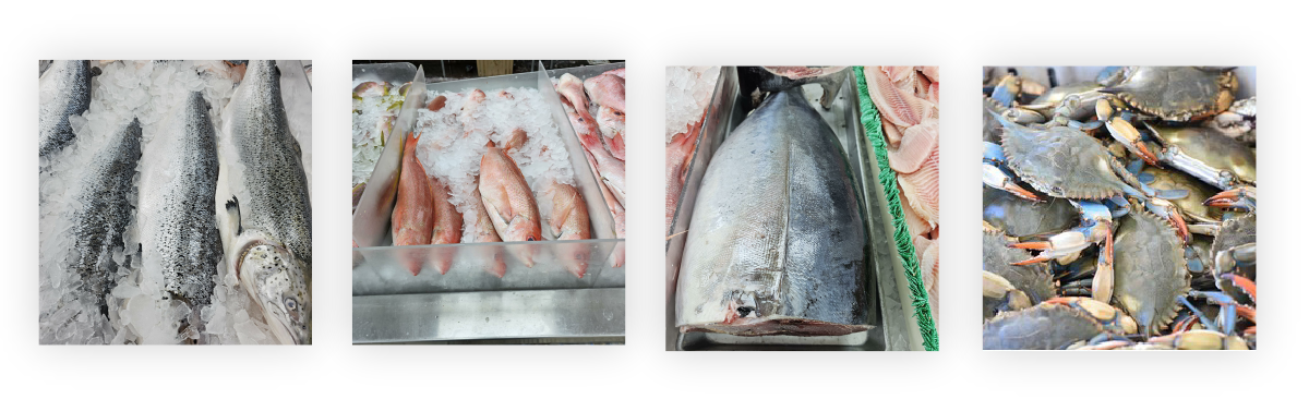 Blue CrabTunaRed snapperAtlantic Salmondungeness crabmahi mahiJumbo shrimpOysters